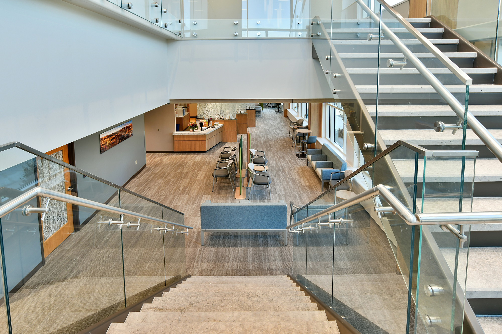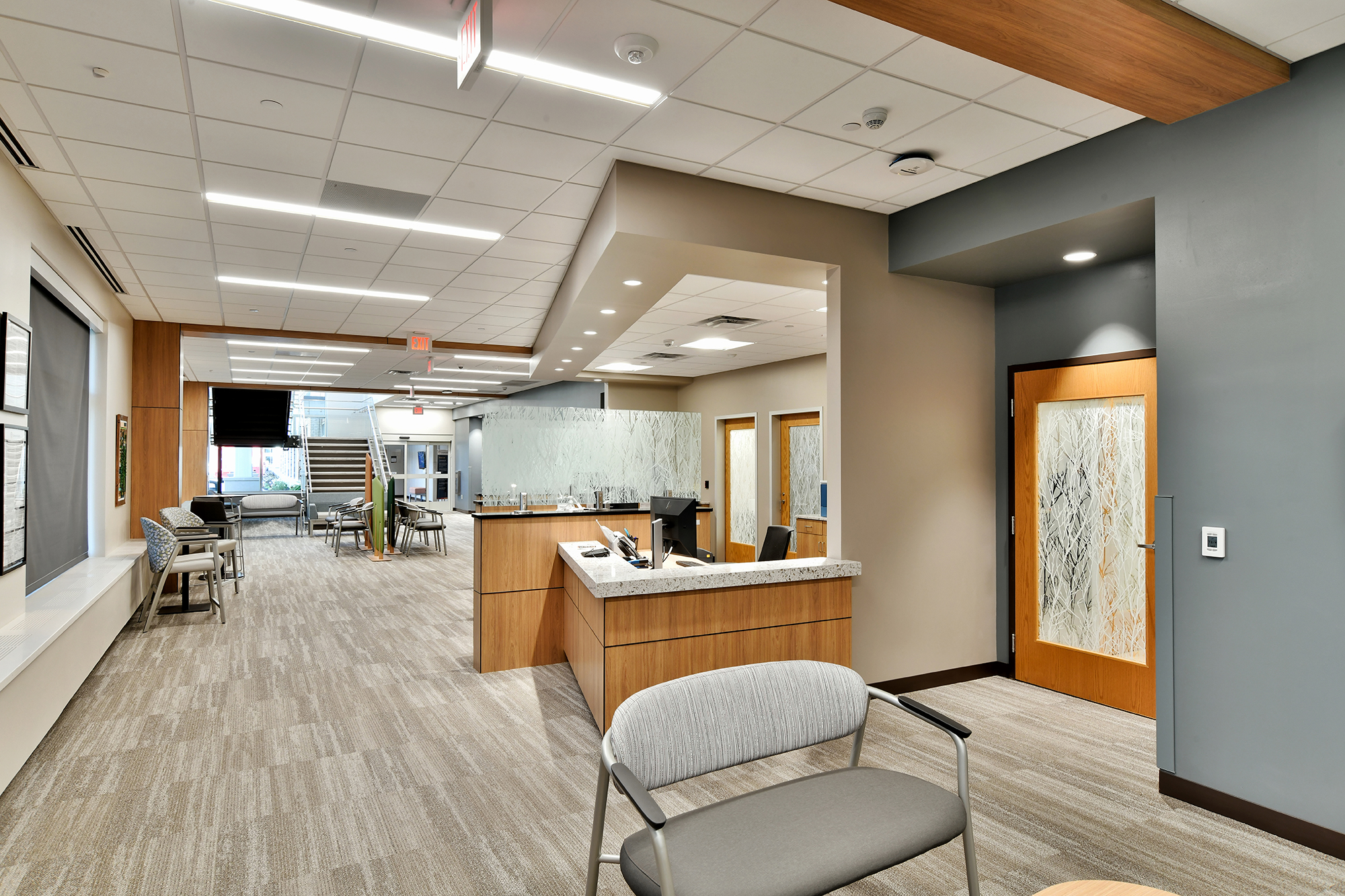 The Tamarack Health team and their partners at River Valley Architects were seeking fresh ideas from a new furniture vendor, and Atmosphere Commercial Interiors was selected to collaborate with the teams to specify furniture for waiting areas, offices, meeting + teaching spaces, and a behavioral health area.